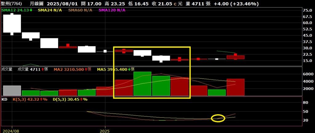 從技術面來看,日線經過兩個月左右的低量橫盤整理,接著開始出量上攻,突破下降的半年線反壓後,稍作整理;長天期的月KD目前在30以下向上黃金交叉中,成交量在低檔處出現大量換手,25元以上的成交量並不多,因此自71.5下跌以來的套牢量不算多。 以下截取自XQ操盤高手