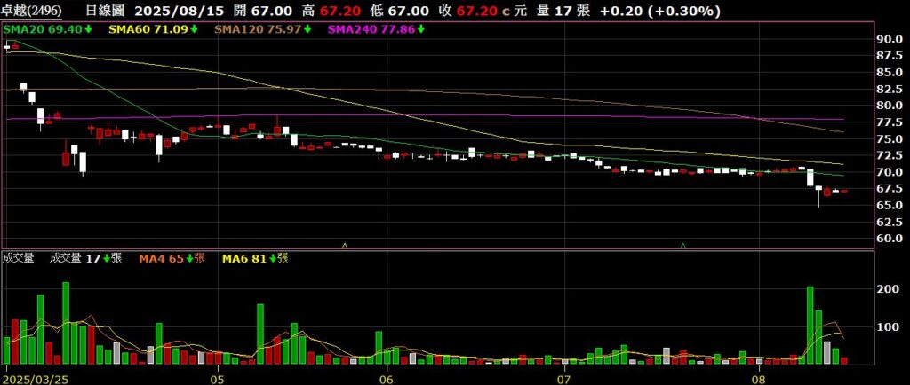 卓越(2496)補教業者,Q2 EPS為0.91元,不如市場預期,股價創波段新低
