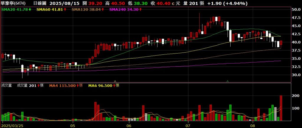 華豫寧(6474)MCU代理與電子鎖公司,Q2 EPS為0.86元,七月營收為2.86億,年減11.96%,股價回測半年線