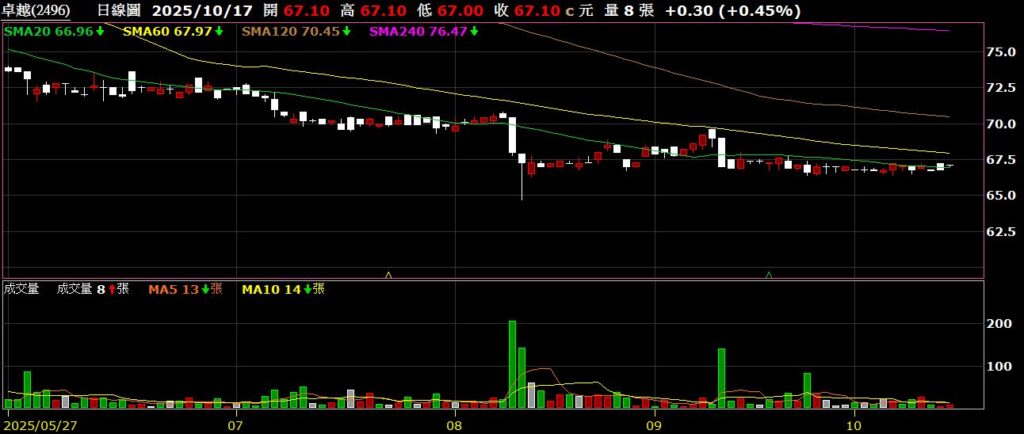 卓越(2496)補教業者,九月營收為7844萬,年增5.76%,股價低檔橫盤整理