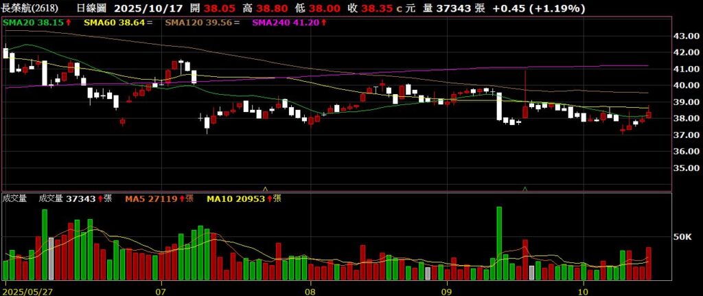 長榮航(2618)航空公司,九月營收為156.17億,年減10.03%,加上空姐病逝利空消息,股價回測前低