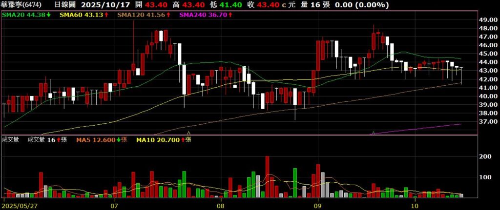 華豫寧(6474)MCU代理與電子鎖公司,九月營收為3.32億,年減13.49%,股價回測季線有守