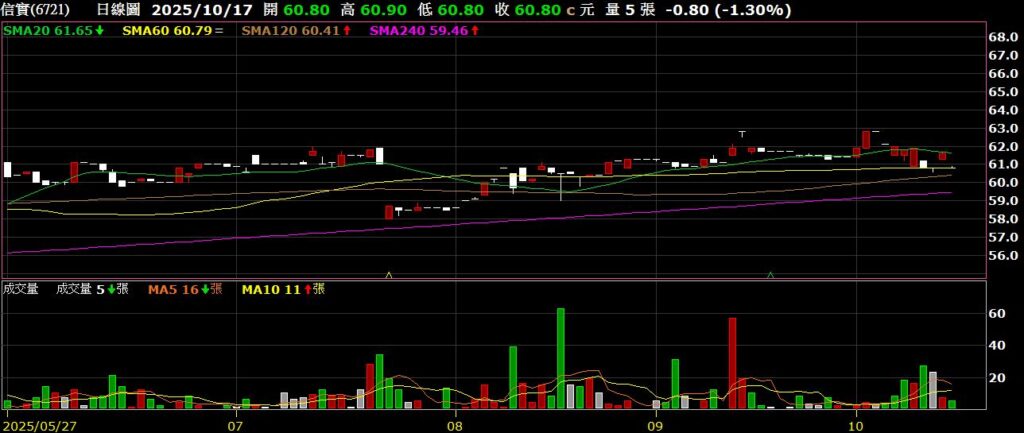 信實(6721)清潔保全公司,九月營收為3億,年增9.58%,股價回測季線