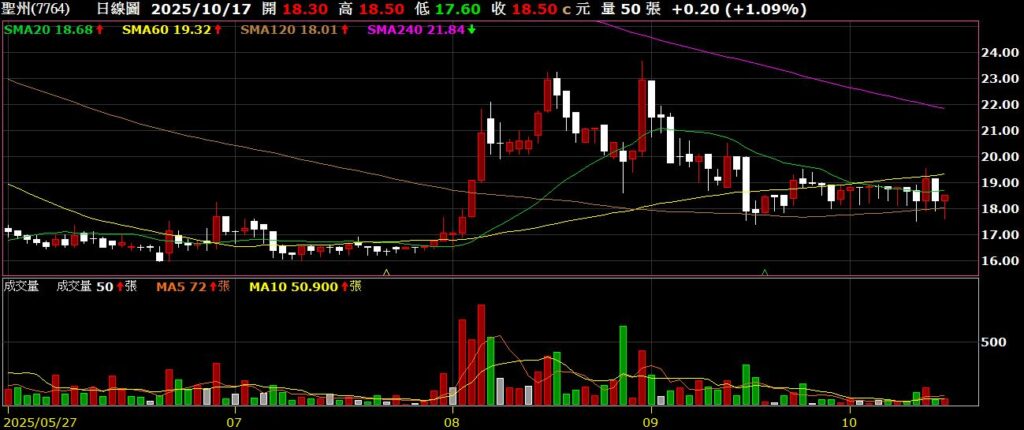 聖州(7764)全球前三大車用踏墊商,九月營收為6698萬,年增1.17%,股價蓄勢挑戰季線