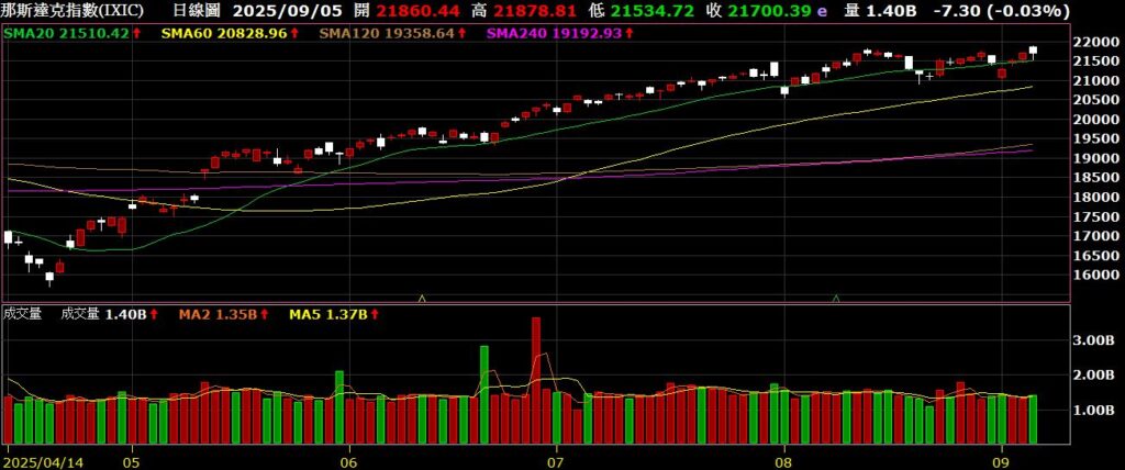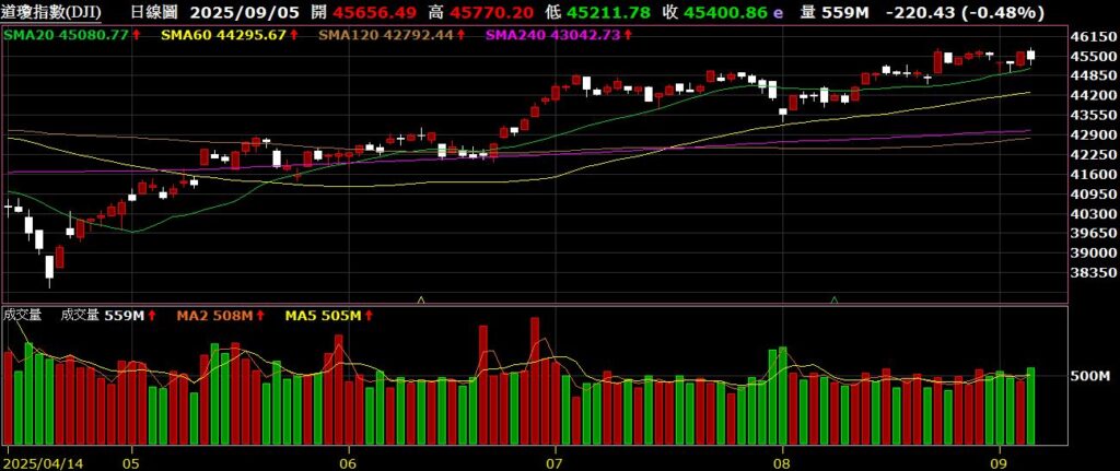 觀察美國四大指數,上週除了費半指數外,其餘三大指數再度創歷史新高;上週美國公布非農就業人數增加2.2萬人,遠低於市場預期的7.5萬人,而失業率攀升至4.3%,則是符合市場預期,公布後,市場預期九月篤定會降息,四大指數齊揚;美國上週初領失業金人數為23.7萬,高於市場預期的23萬,顯示就業市場疲弱;從FED watch觀察,九月降息的機率已經來到100%,十月降息兩碼以上的機率為79.5%。以下資訊擷取自XQ操盤高手。