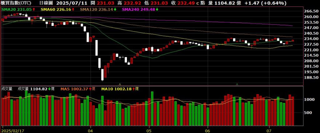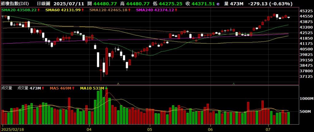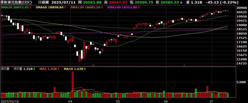 觀察美國四大指數,在川普陸續公布22國的關稅名單後,上週持續反彈,標普500與那斯達克持續創下歷史新高,道瓊與費半也隨時準備挑戰歷史高點;上週FED公布會議紀錄,紀錄顯示多數官員認為今年應該降息,但對降息幅度和時機存在分歧;美國上週初領失業金人數為22.7萬,低於市場預期的23.6萬,創下兩個月以來新低,不過續領失業金人數上升至196.5萬人,則是2021年底以來的最高水準,反映美國失業人口重返職場困難重重;從FED watch觀察,七月降息的機率為5.2%,九月降息的機率為60.4%。以下資訊擷取自XQ操盤高手。