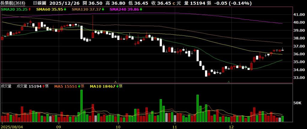 長榮航(2618)航空公司,11月營收為184.82億,年增1.16%,為歷史同期新高,股價反彈站上季線