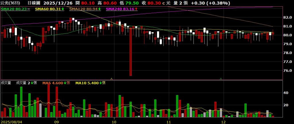 云光(3633)背光模組廠,11月營收為4.86億,年減16.47%,股價沿月季線橫盤整理