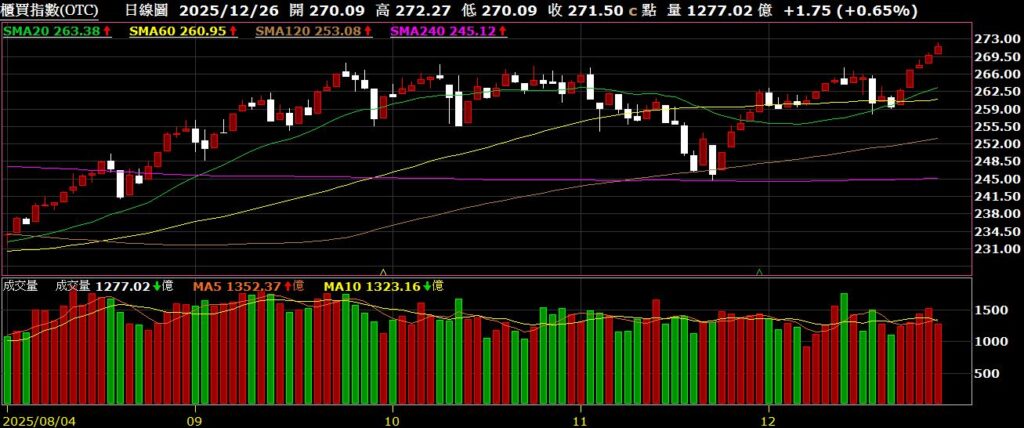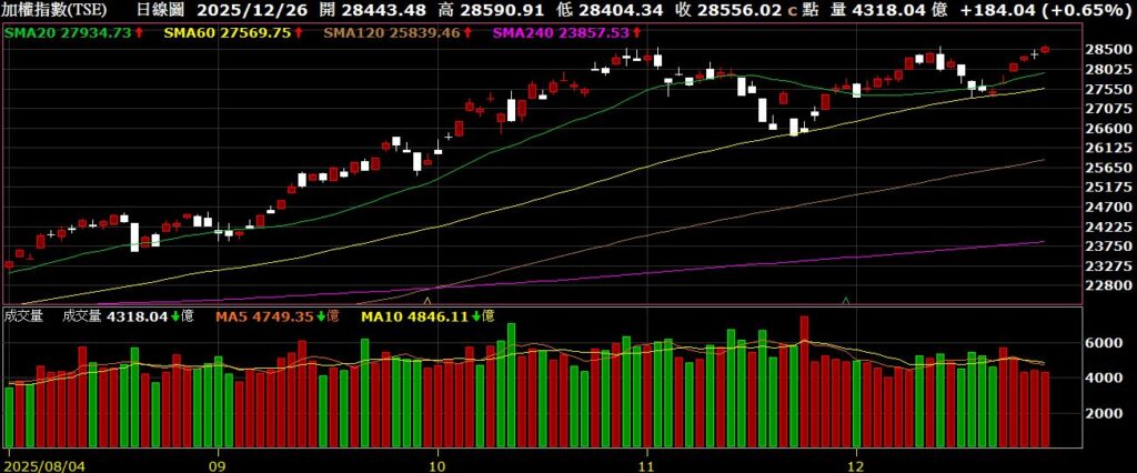 耶誕假期交投清淡,加權指數再創新高