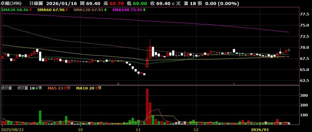 卓越(2496)補教業者,12月營收為7826萬,年增6.29%,股價持續橫盤整理_