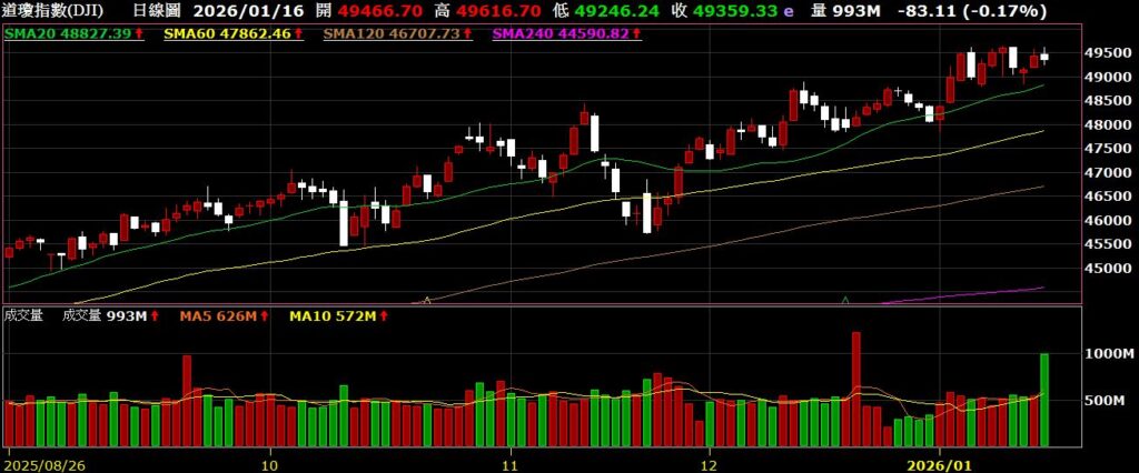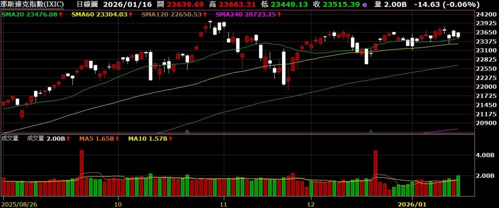 觀察美國四大指數,上週四大指數除了那斯達克之外,其餘三大指數續創歷史新高;上週美國勞工部公布去年12月CPI年增率為2.7%,符合市場預期,核心CPI年增率維持在2.6%,為2021年3月以來最低,市場也預期FED本月將按兵不動;美國上週初領失業金人數為19.8萬,低於市場預期的21.5萬,創下六週以來的新低,勞動市場動態變化不大,裁員維持低檔但招聘遲緩;從FED watch觀察,一月降息一碼的機率為5%。以下資訊擷取自XQ操盤高手。