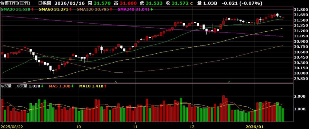 上週國安基金召開114年第四季例行會議,宣布終止279天史上最長護盤,合計獲利65.31億元,投資報酬率為53%,官員強調,退場並不代表忽視風險,未來國安基金仍將密切關注國內外經濟情勢變化,必要時隨時因應,但在股市創新高,基本面穩定及國際情勢相對平穩的情況下,決定先行退場;籌碼面來看,上週外資買超565億,轉賣超為買超;期貨的部分,空單小增至33249口,十大交易人空單小增至7259口,大盤小漲,法人期貨空單小幅增加;融資餘額來看,上週融資小增119億,為3633億,融券的部分小增4356張,至32.2萬張左右,資券同增;技術面來看,單週小漲1119點,周線連四紅,指數持續刷新歷史新高,最高來到31475,站上三萬一大關,指數持續墊高,成交量也溫和放大,不過技術指標開始高檔鈍化,還是需要留意突然的技術性修正。以下資訊擷取自XQ操盤高手