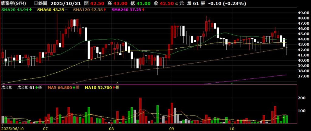 華豫寧(6474)MCU代理與電子鎖公司,九月營收為3.32億,年減13.49%,延後掛牌利空發酵,股價回測半年線