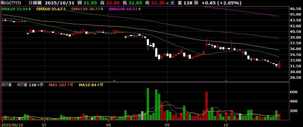 裕山(7715)環境工程公司,九月營收為6133萬,年減56.9%,庫藏股無效,股價創波段新低