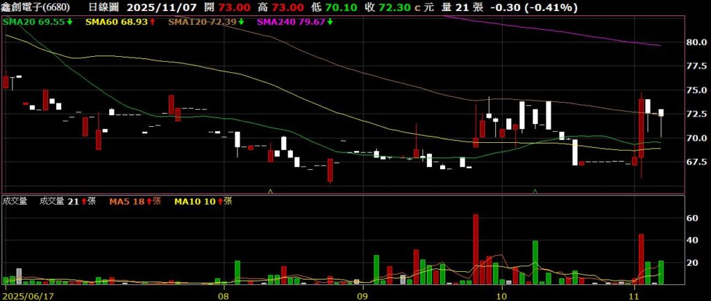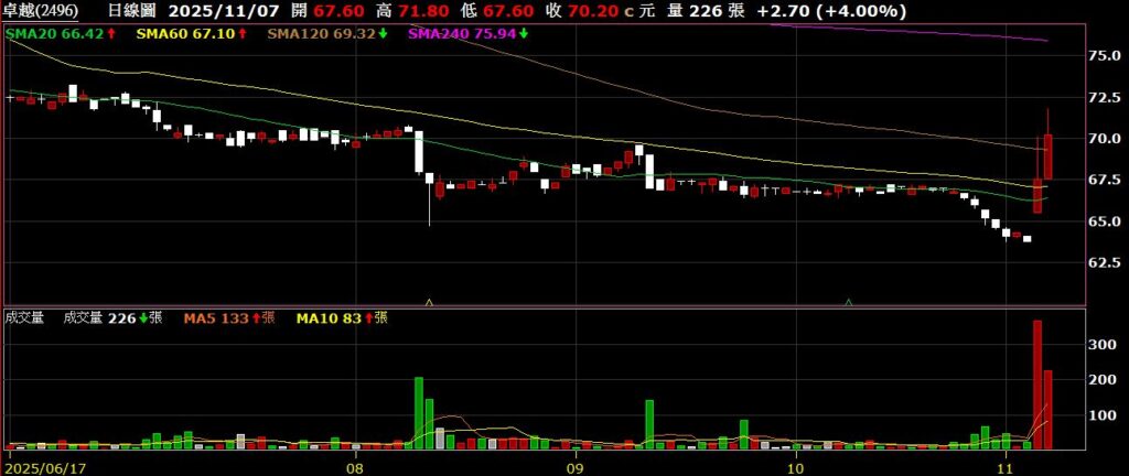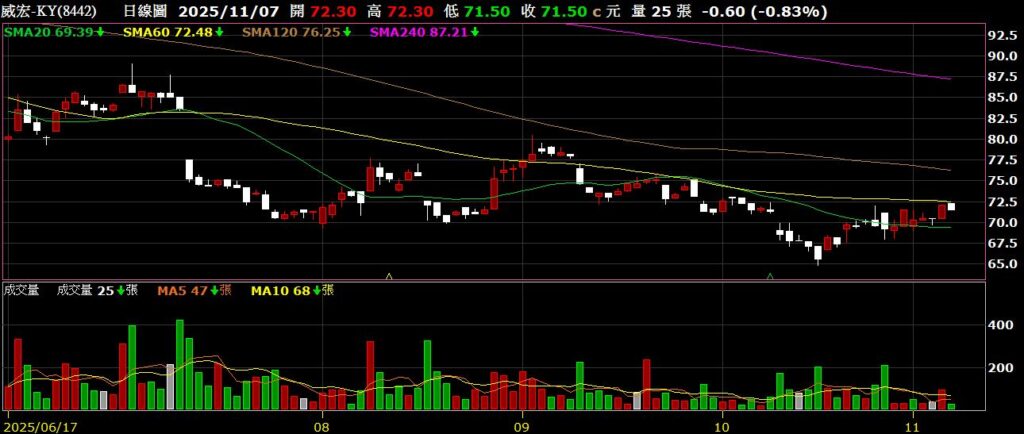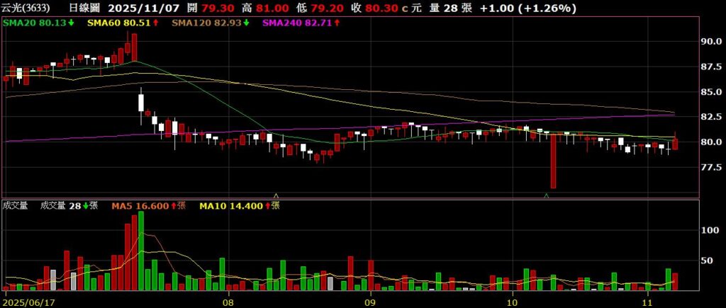 回到個股上面來,上週台積電稍作休息,一拉回指數也跟著跌破兩萬八,接下來陸續公布Q3財報,中小型股有機會在台積電空出指數的情況下,藉由財報利多有所表現;上周因華公布十月營收為570萬,連續八個月有營收挹注;卓越公布Q3 EPS為2.08元,毛利率為55.57%,較去年同期56.11%下滑0.54%,營業利益率為19.99%,則較去年同期下滑1.26%,十月營收為7849萬,年增4.88%,董事長曾淑鈴表示,隨著國內展校與海外布局同步推進,營運動能持續增強,2026年將邁入雙引擎成長的新階段,卓越上半年因新校設立與裝修投入,資本支出上升,使毛利與淨利短期受壓,但隨秋季開課招生啟動,營收逐季回升,展望第四季,預期可望維持去年同期獲利水準,全年營運表現穩中向上,利多帶動股價單週上漲8.67%;嘉威公布十月營收為2.90億,年減19.9%,雖然持續年減,不過已創下關稅戰以來新高;云光公布十月營收為4.91億,年減4.3%;長亨公布十月營收為2.27億,年增70.2%,創下歷史新高,未來可望持續刷新紀錄,期待股價能夠反應價值;信實公布Q3 EPS為1.43元,毛利率為5.36%,較去年同期5.1%上升0.26%,營業利益率為3.8%,較去年同期3.38上升%0.42;天凱公十月營收為4272萬,年增23.81%;聖州公布十月營收為5450萬,年減9.22%;威宏-KY公布十月營收為7.71億,年增8.96%,如公司先前所說,Q4重返成長態勢;鑫創電子公十月營收為5861萬,年增33.31%,終止連六個月年減;;上週持股無動作。以下資訊擷取自XQ操盤高手。