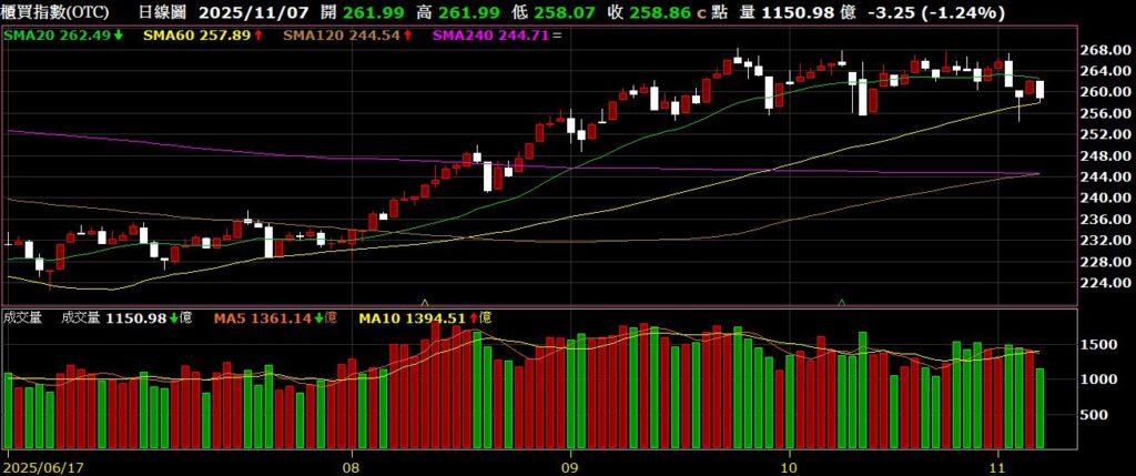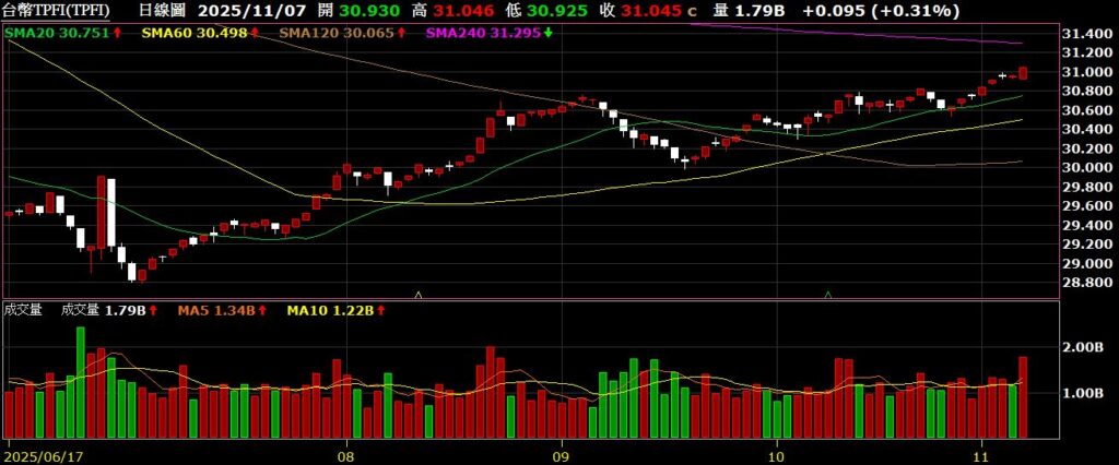 上週金管會公布外資十月淨匯入15.53億美元,以月底新台幣對美元匯率30.749元計算,約新台幣478億元,為2021年以來同期第二大淨匯入,累計前十月外資淨匯入達340.89億美元、約新台幣1兆482億元,寫下史上同期新高紀錄,也帶動十月台股大漲2412點,創下歷史第二大單月漲點;財政部公布十月出口總值達618億美元,較去年同期成長49.7%,創下歷史單月新高;累計前10月出口總額達5144.5億美元,年增31.8%,提前刷新全年紀錄,也是台灣首次全年出口突破5000億美元水準,主因為受惠全球經濟展現韌性、AI及高效能運算需求持續火熱、消費性電子新品上市的鋪貨效應持續發酵,以及傳統外銷旺季加持等四大因素;籌碼面來看,上週外資賣超1141億,連五周賣超;期貨的部分,空單小增至30820口,十大交易人空單小增至8433口,大盤小跌,法人期貨空單小幅增加;融資餘額來看,上週融資小增60億,為3077億,融券的部分小減3692張,至30.8萬張左右,資增券減;技術面來看,單週小跌581點,周線終止連十漲,指數最高來到28554,再創歷史新高,不過由於短線技術面過熱,指數創高後拉回修正,回測月線,不過本波自關稅戰起漲超過一萬點,與均線乖離仍大,仍有向下修正空間。以下資訊擷取自XQ操盤高手
